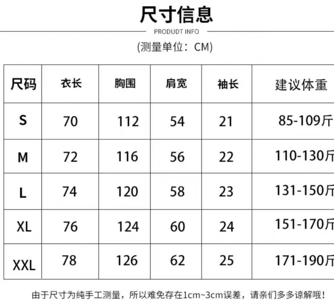 5.关于衣服尺寸,平面测量因测量方法不同,手工测量存在2-4cm左右误差