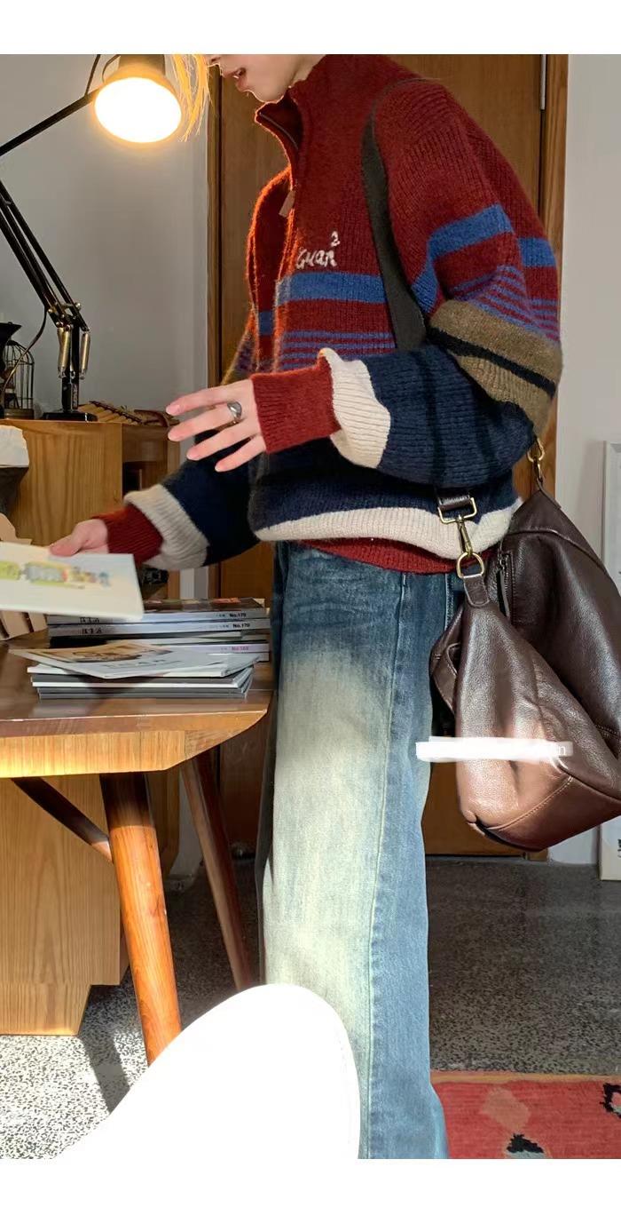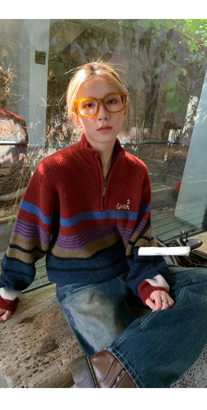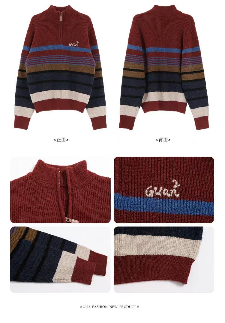 服饰箱包、运动户外 > 上装 > 2022新款红色毛衣女秋冬内搭日系复古立领上衣设计感小众宽松针织衫