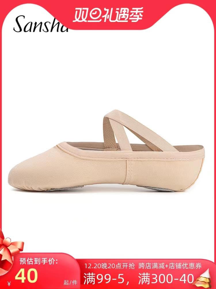 Sansha 法国三沙芭蕾舞练功鞋棉帆布舞蹈鞋儿童女软底鞋跳舞猫爪