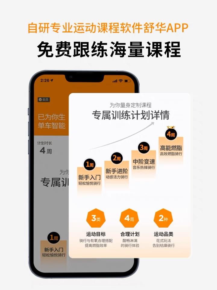 智能动感单车,室内体验骑行新感觉,流线性车身在现公路骑行的动感。越野级"工字型"底盘稳固三角结构,运动更稳定