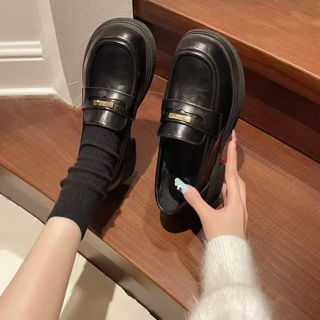 内里材质: 合成革后跟高: 中跟帮面材质: 合成革开口深度: 深口款式: 乐福鞋跟底款式: 粗跟鞋头款式: 圆头