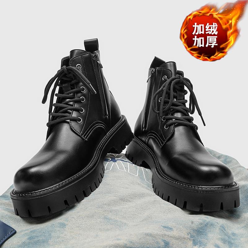 爆款侧拉链马丁靴男高帮真皮工装休闲皮鞋大码冬季加绒雪地棉鞋