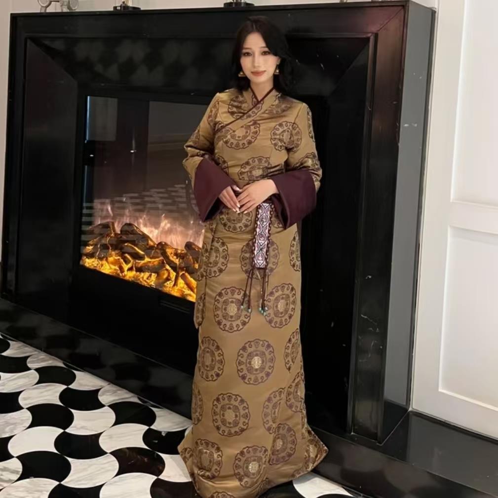 尼玛央吉 秋日来信 三色高级精致质感撞色西藏服 香槟撞紫