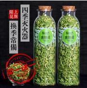 金银花茶具有清热解毒,温病发热的功效。这是由于杭白菊是甘菊中的佳品。李时珍《本草纲目》道:菊能利五脉,调四肢,治头风热补;还记载一段神话:“神仙传言,康风子、朱孺之皆以服菊成仙”