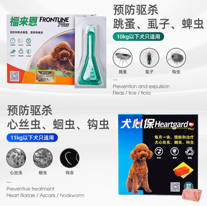 核心功效:“✅ 内外同驱:一滴覆盖,驱杀跳蚤、蜱虫、虱子,还能阻断虫卵繁殖,从根源解决寄生虫问题!✅ 小型犬专属:精准匹配小型犬体质,温和不刺激,滴剂设计易操作,滴在背部无需强迫喂药~”(用符号 + 场景化描述 )