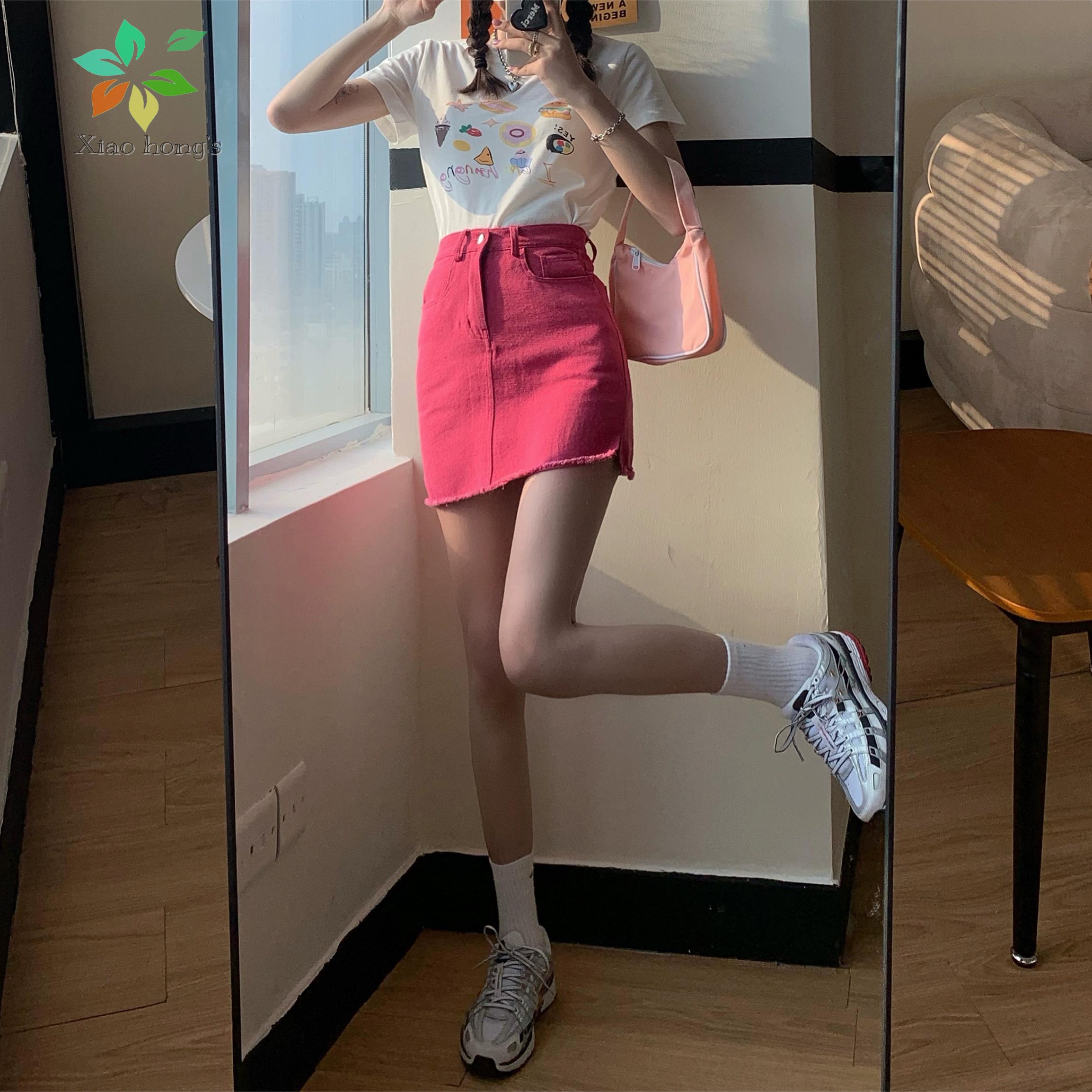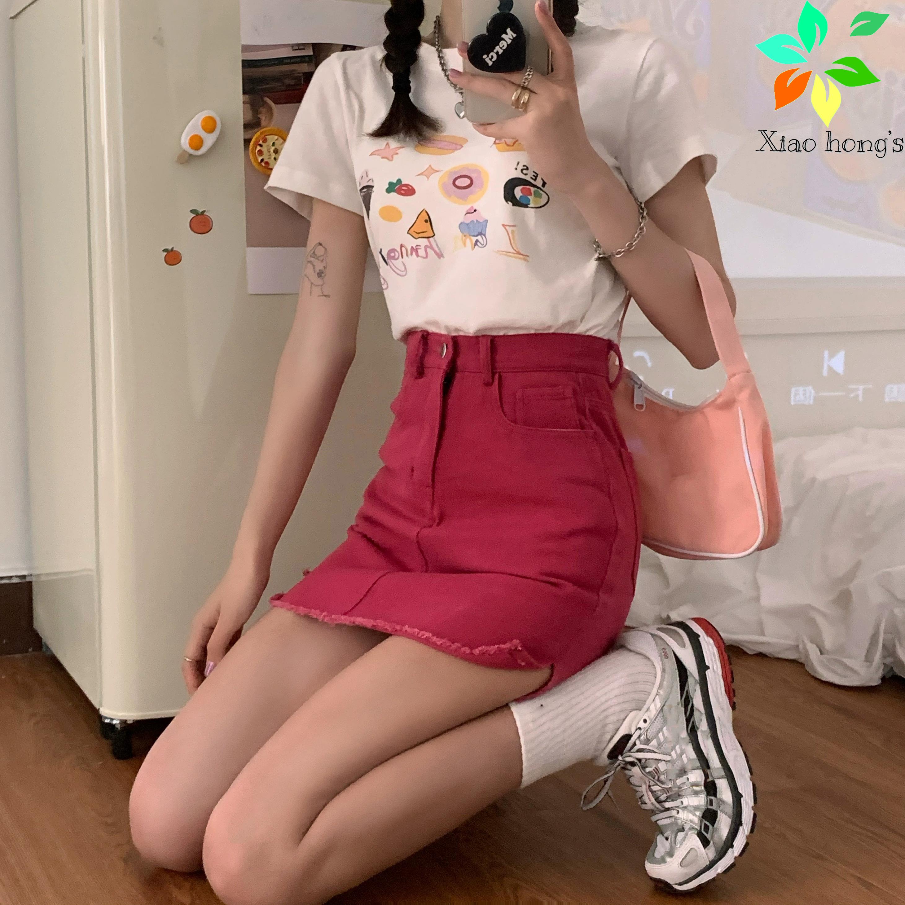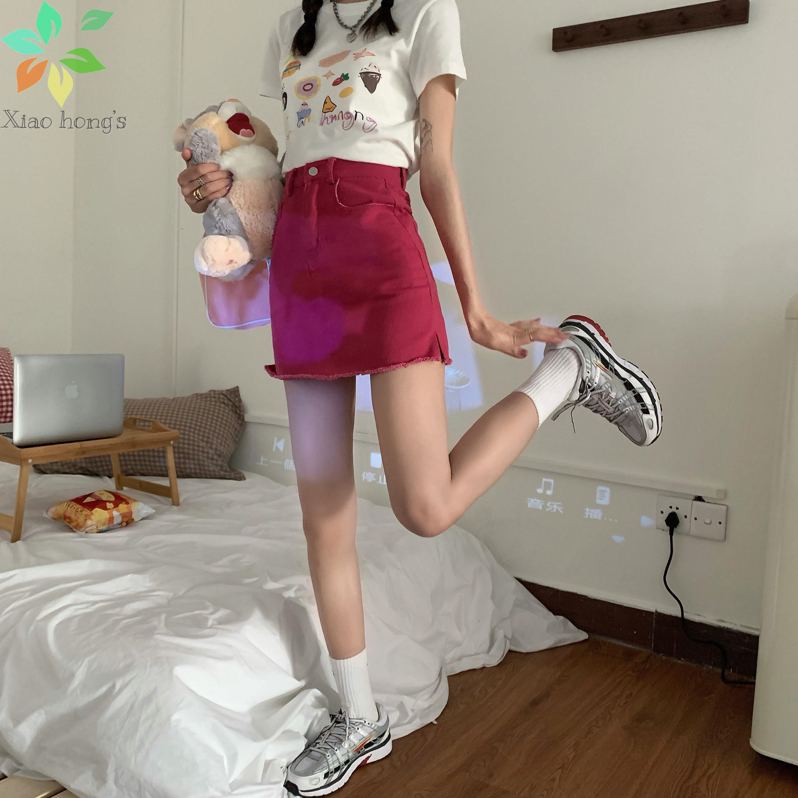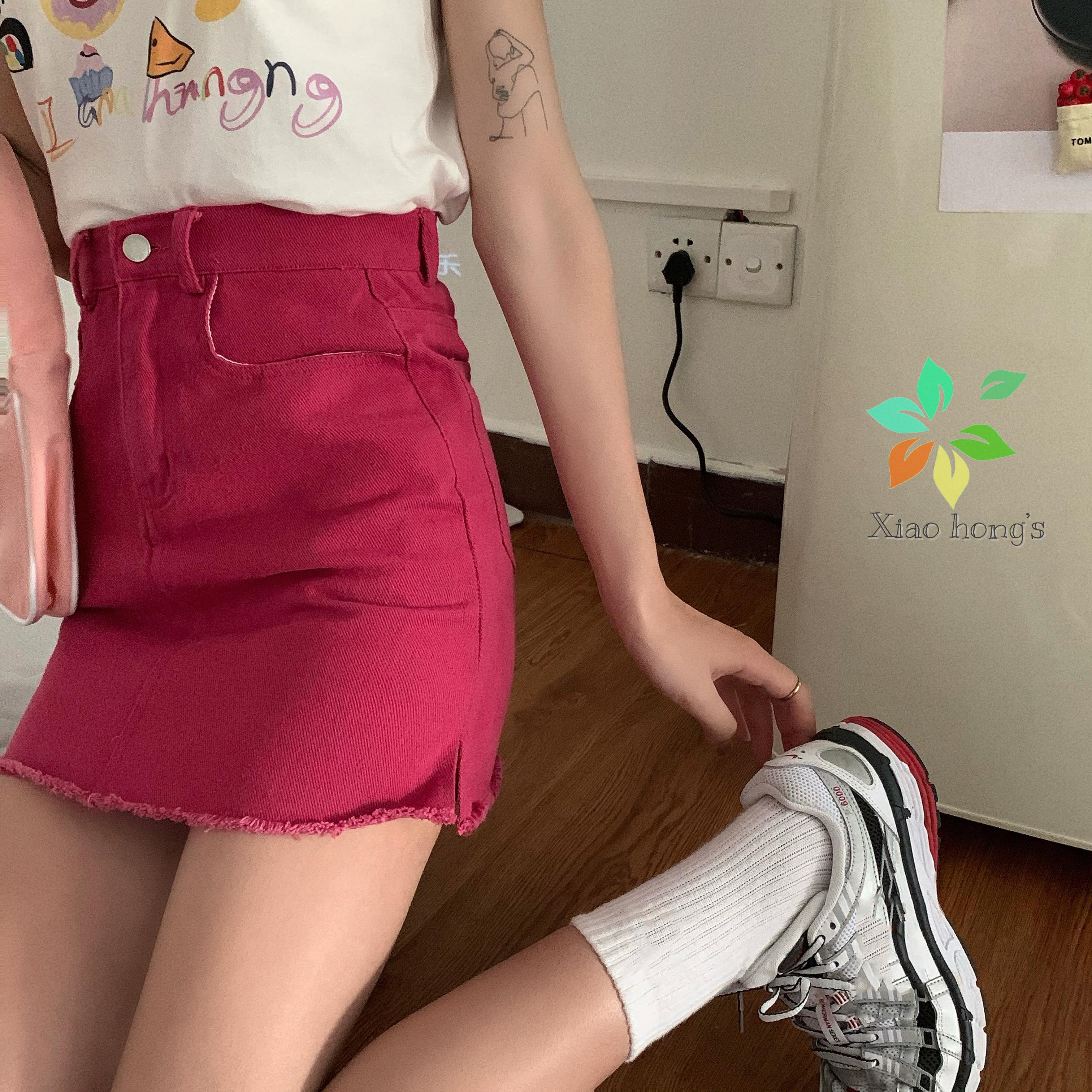 动漫周边 > 服饰 > 浆果色a字短裙女夏百搭牛仔半身裙