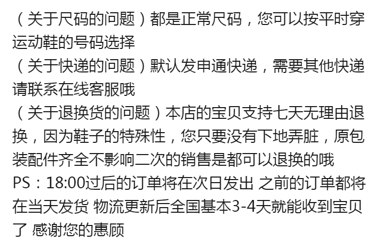 七天无理由退换货