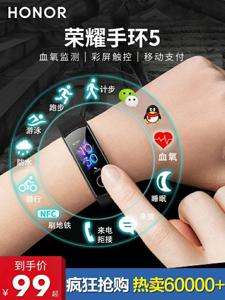 华为荣耀智能手环5NFC版运动手表4多功能3蓝牙跑步5i计步防水游泳心率睡眠男女官方原装正品