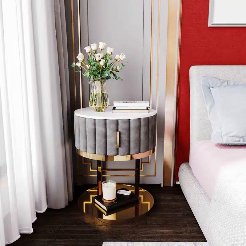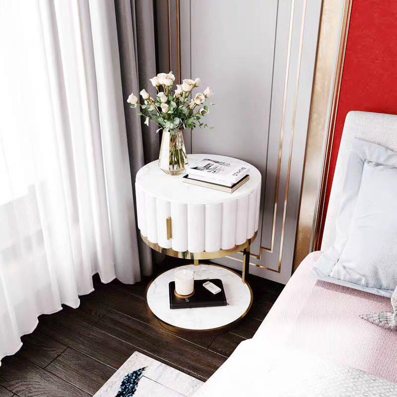 北欧轻奢床头柜圆形网红双层储物柜花架,酒店浪漫卧室家居床边柜