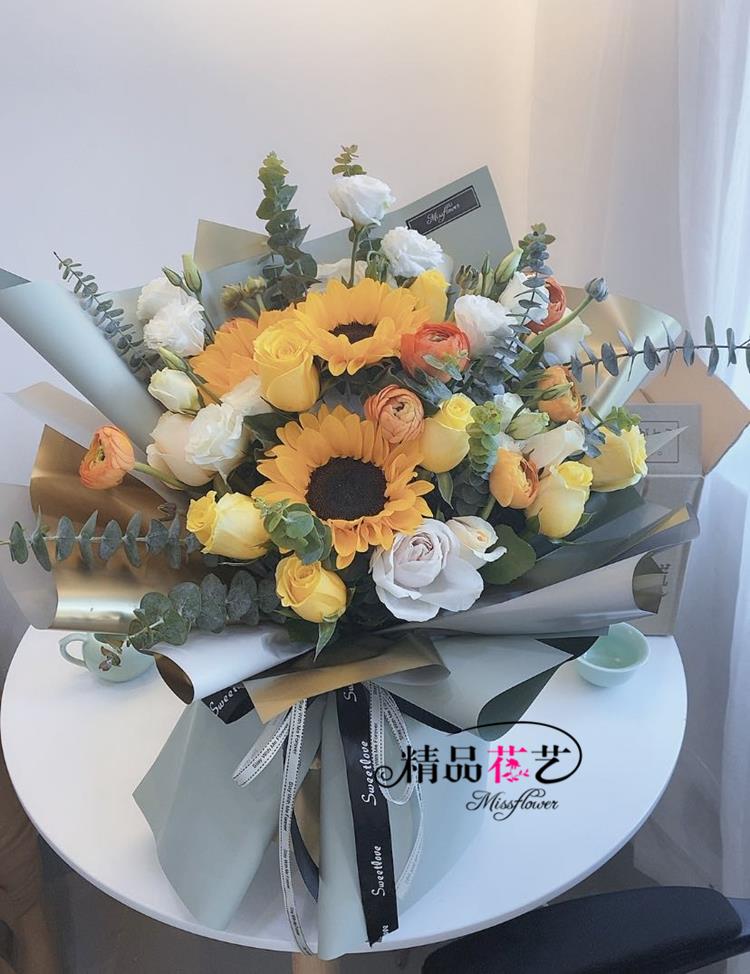 • 商品名称:小花旦向日葵玫瑰混搭花束...