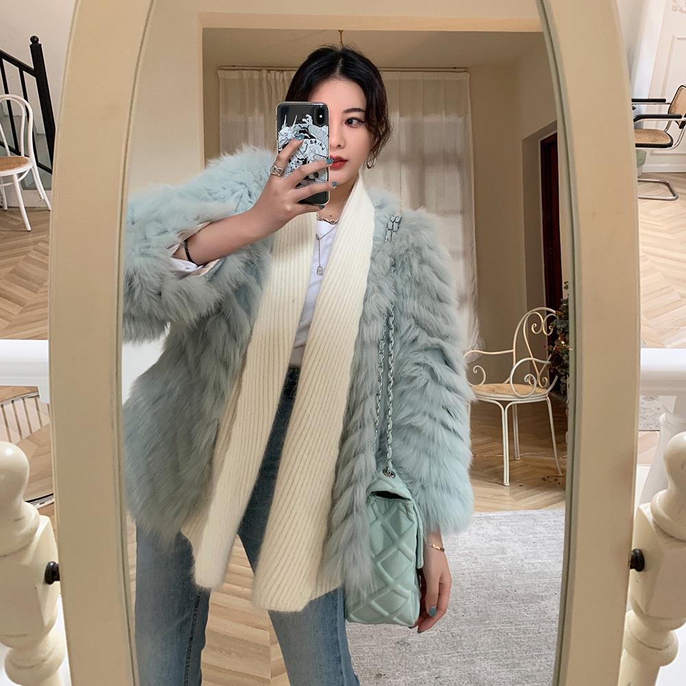 Alice W花花家新款重工车条进口狐狸毛接拼貂绒针织领皮草外套女
