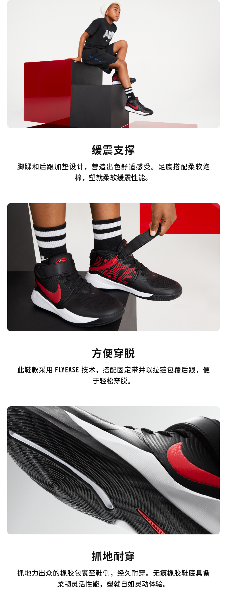 Nike耐克官方TEAM HUSTLE D 9 FLYEASE (GS)大童篮球鞋缓震BV2952