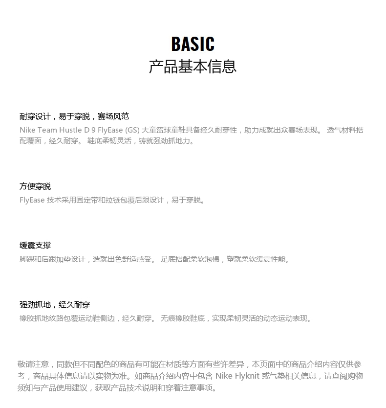 动漫周边 > 其它 > Nike耐克官方TEAM HUSTLE D 9 FLYEASE (GS)大童篮球鞋缓震BV2952