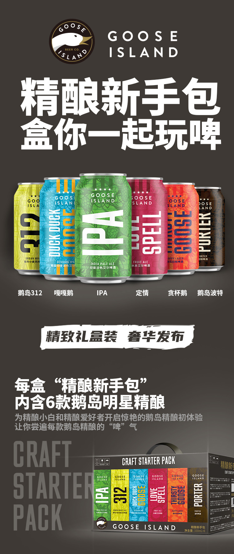 GOOSEISLAND鹅岛IPA多种口味新手包精酿啤酒混合装330ml*12听整箱