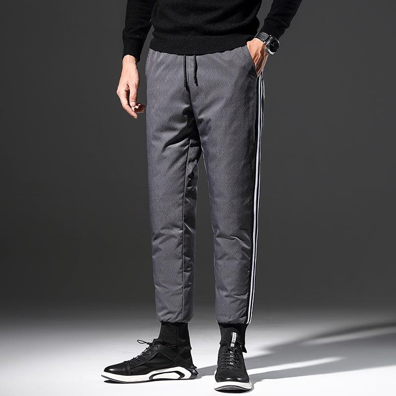 靓仔浅色羽绒裤男外穿冬季户外加厚保暖裤修身棉裤