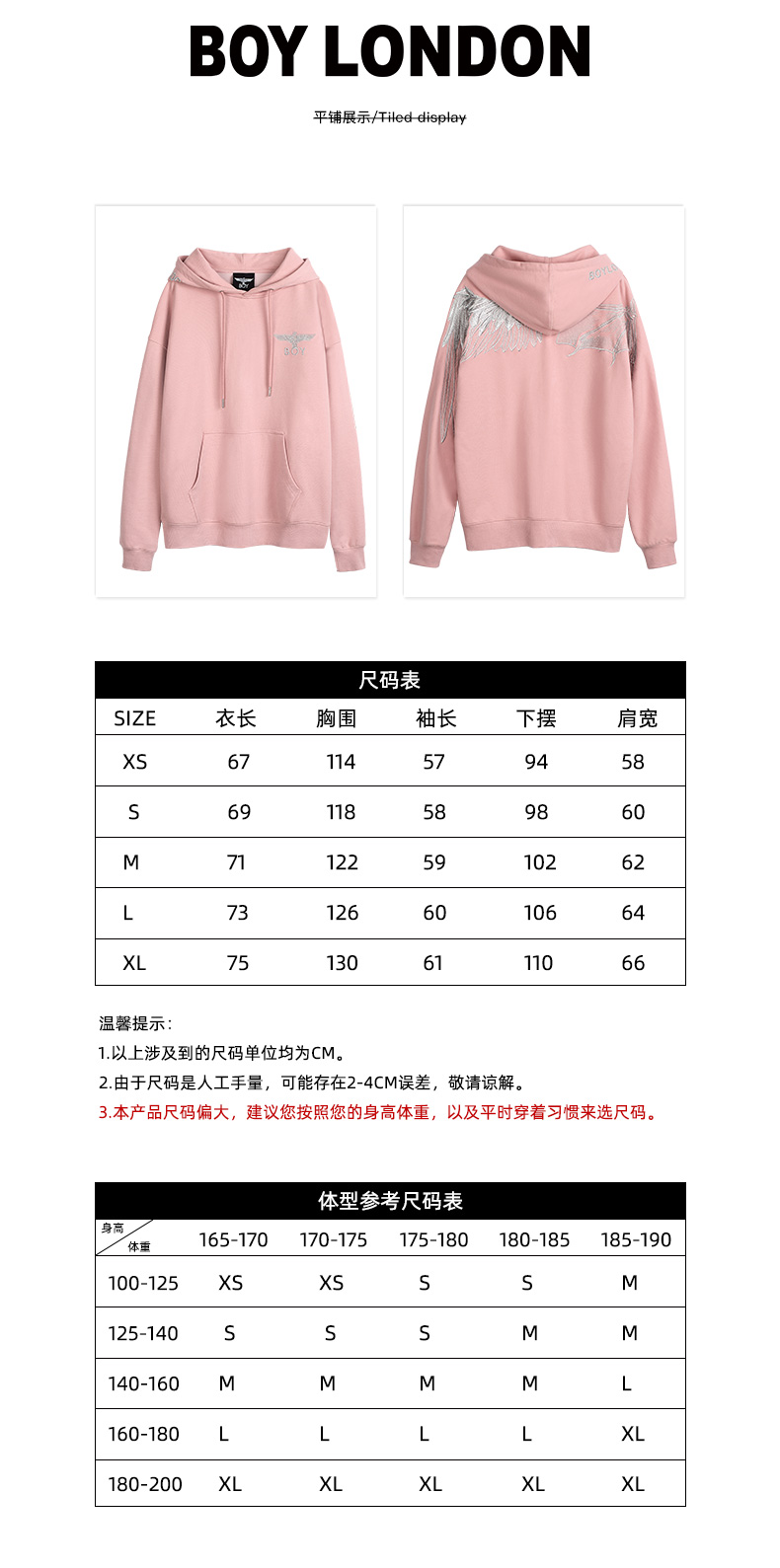 动漫周边 > 服饰 > boylondon粉色外套旗舰官网银线绣翅膀情侣连帽卫衣