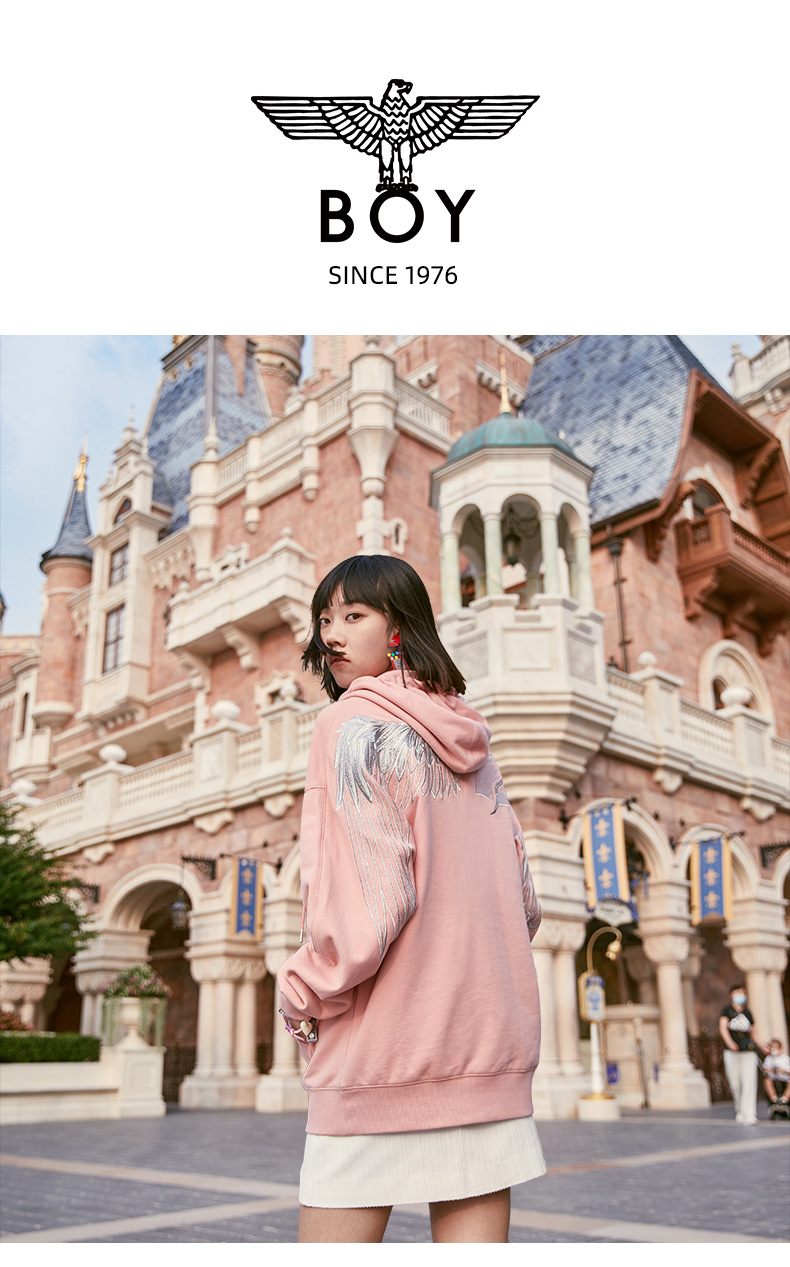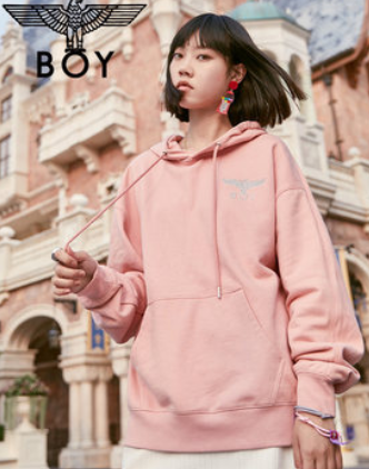 boylondon粉色外套旗舰官网银线绣翅膀情侣连帽卫衣