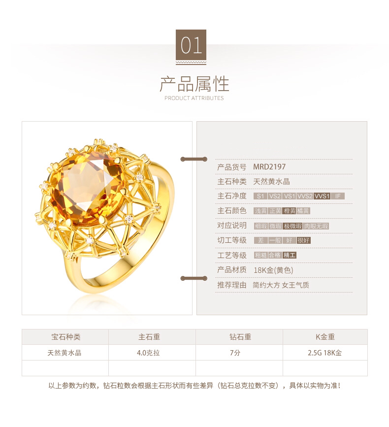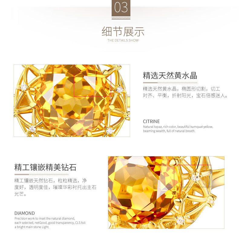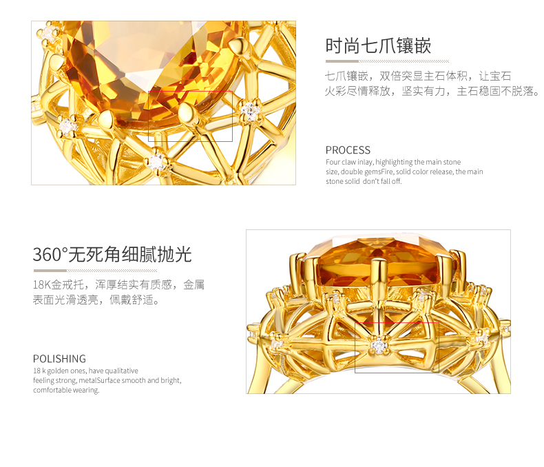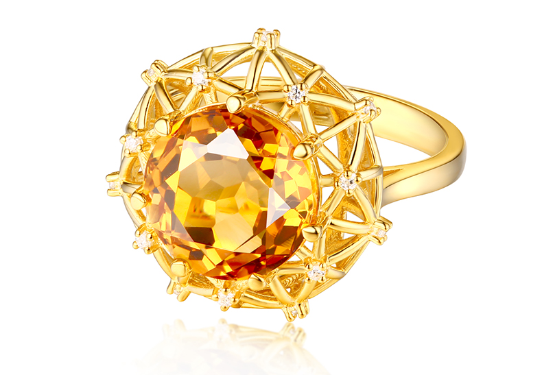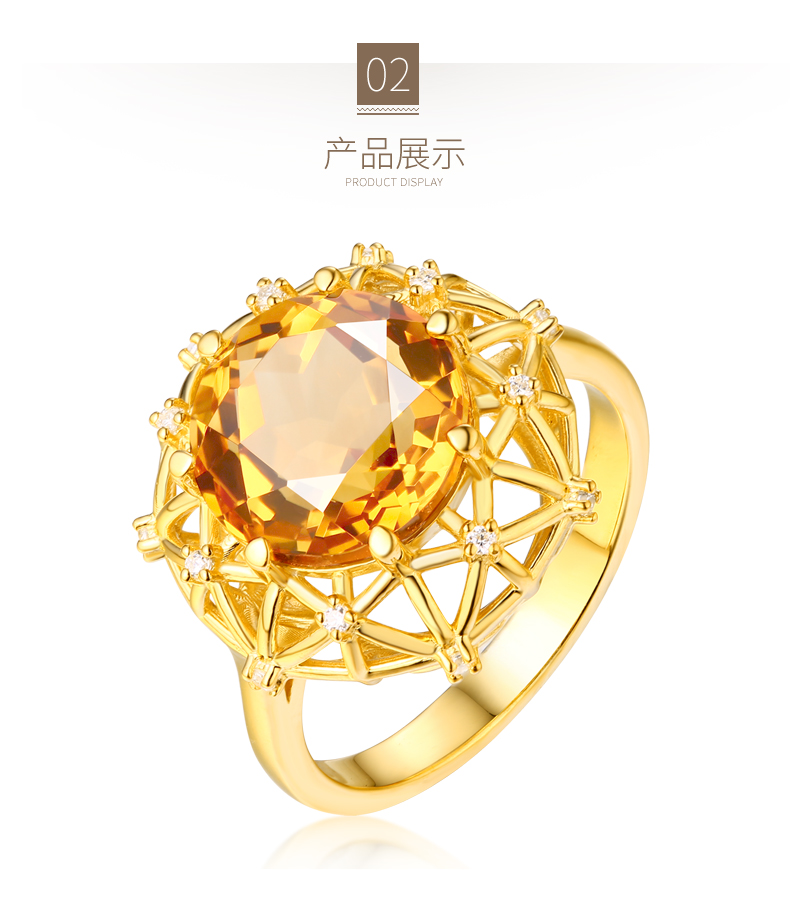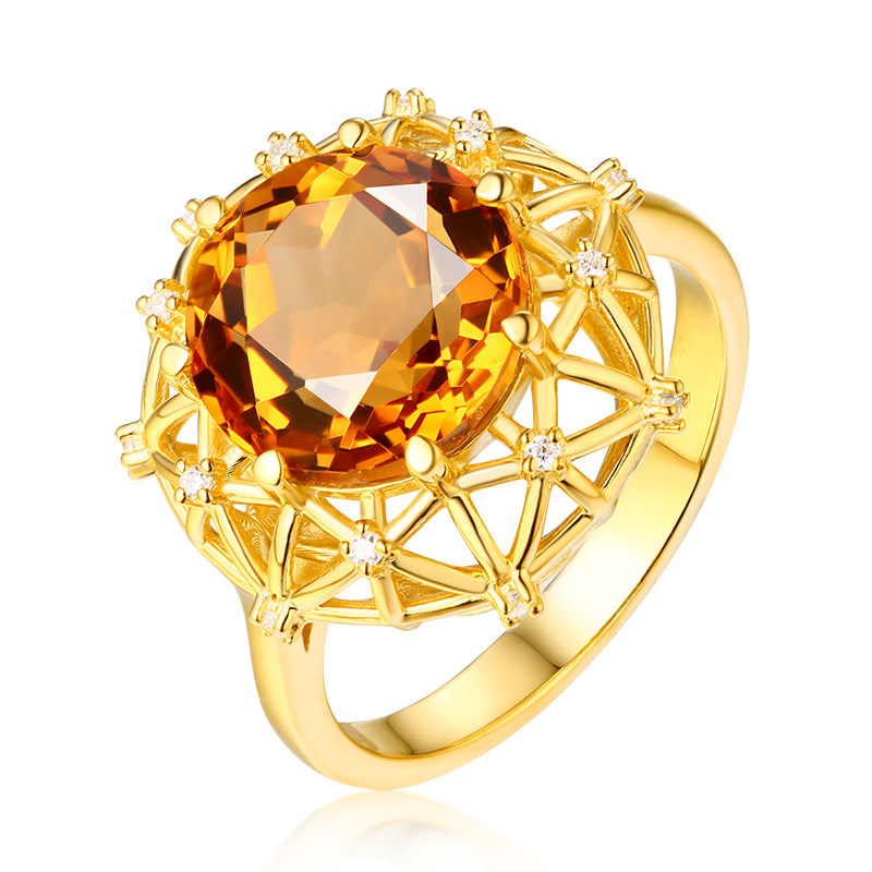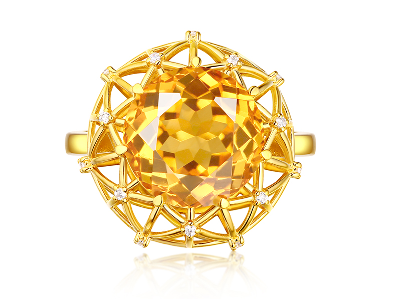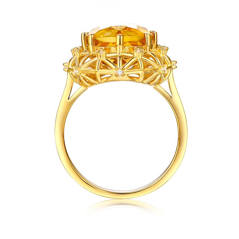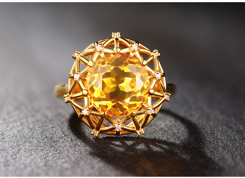 【埃及艳后】天然中彩黄钻戒指黄宝石戒指镶钻24K纯金戒指