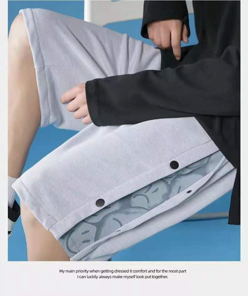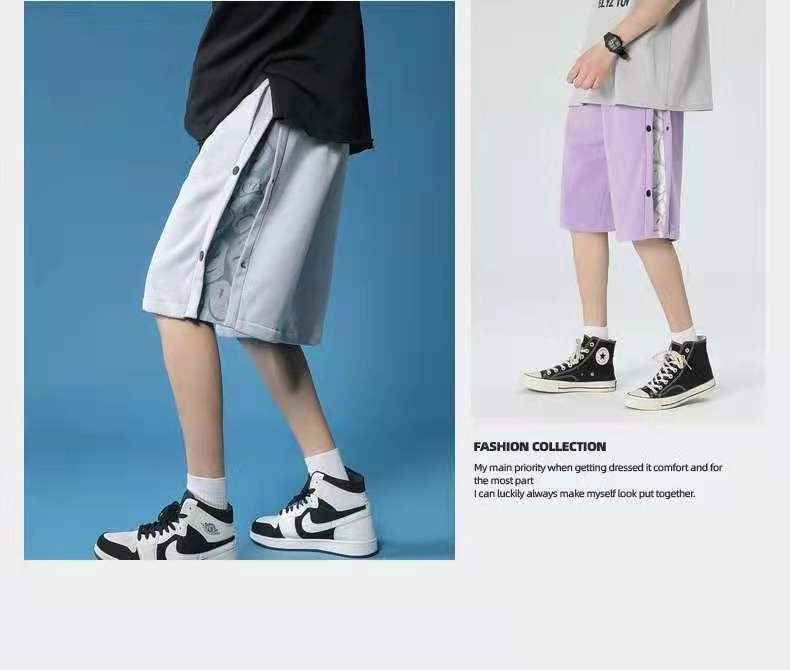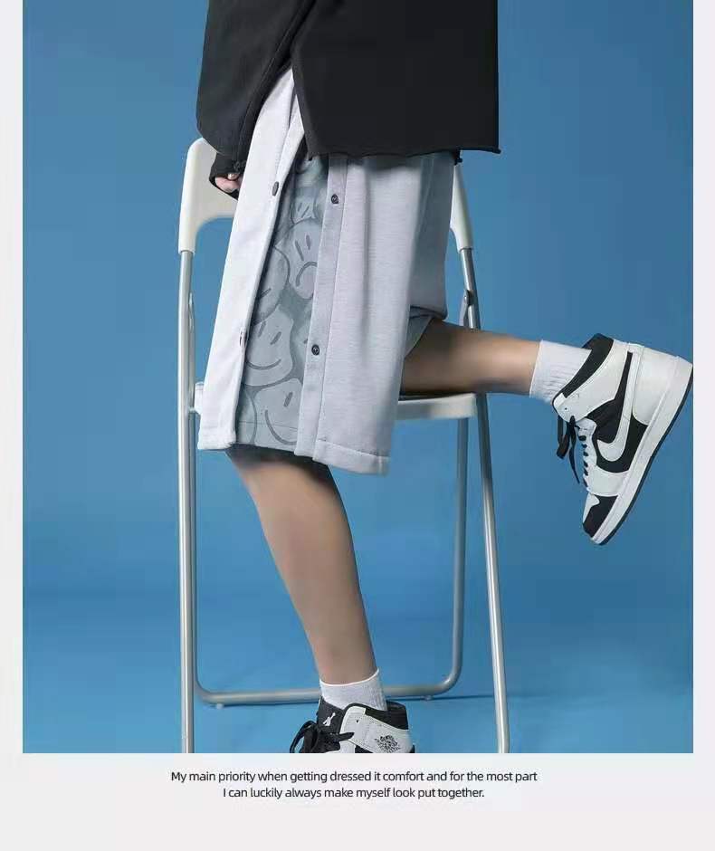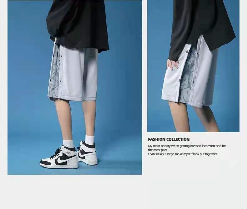 动漫周边 > 服饰 > 排扣短裤男夏季外穿潮牌宽松休闲中裤潮流薄款直筒运动五分裤