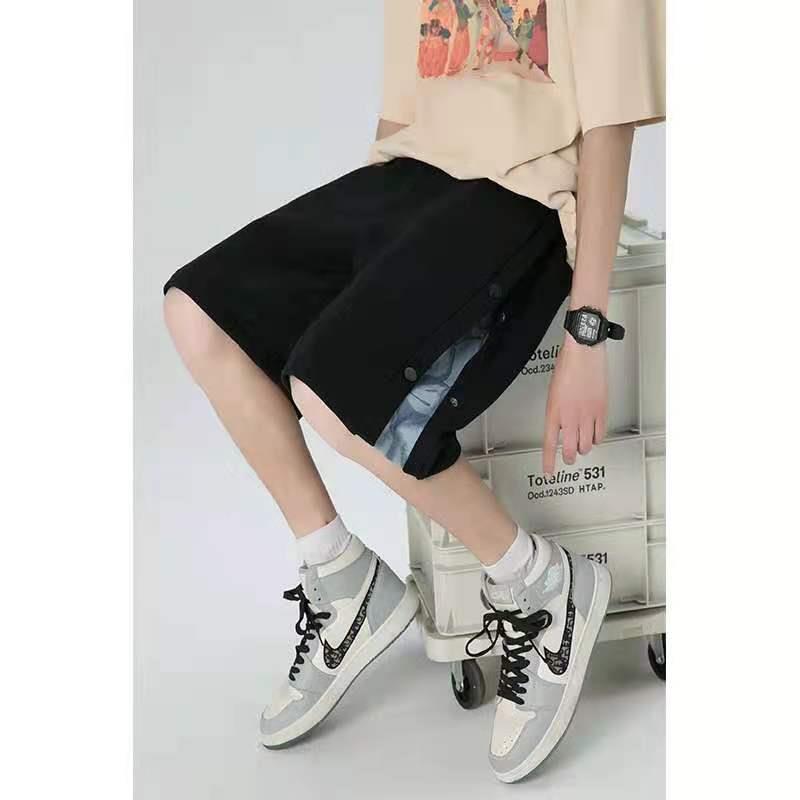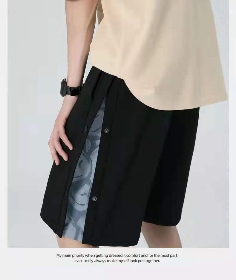 排扣短裤男夏季外穿潮牌宽松休闲中裤潮流薄款直筒运动五分裤