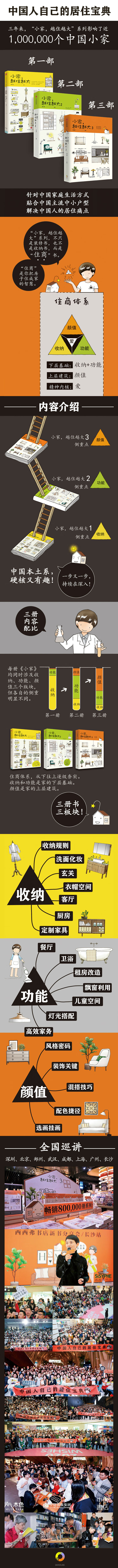 《小家,越住越大》荣获2016年度 “大众喜爱的50种图书”,2016年上市以来,畅销40万册,更不可思议的是,它的版权输出至英国、瑞典、西班牙、罗马尼亚、韩国、泰国、俄罗斯等多个国家和地区!《小家,越住越大2》续写未尽篇章和未谈及的话题,从收纳到功能将居住难题一网打尽!