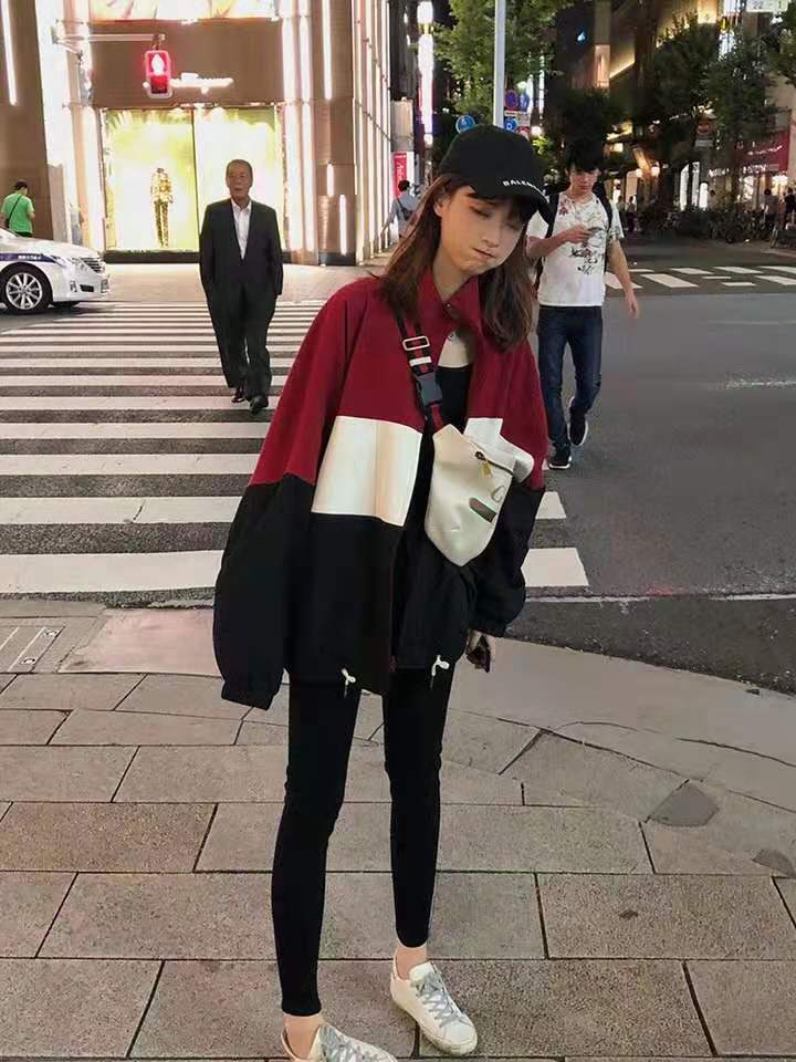 运动风的卫衣,比较的中性,搭配打底裤或者牛仔裤都可以,红色和黑色都很好看,哈哈