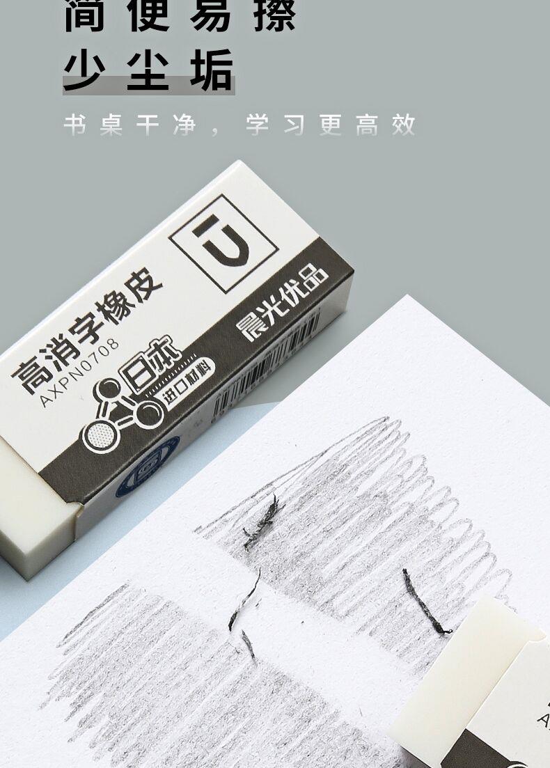 云边文具 ——优品系列 晨光高消字橡皮擦:“少屑、易擦、不留痕”学生日常学习、考试、绘画、办公。简约小巧随身携带