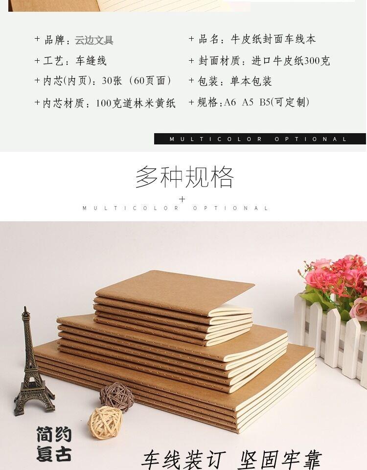 规格:A6、A5、A4、B5牛皮纸材质,舒适简约,可定制,线装式装订,书写办公,简约复古记事本