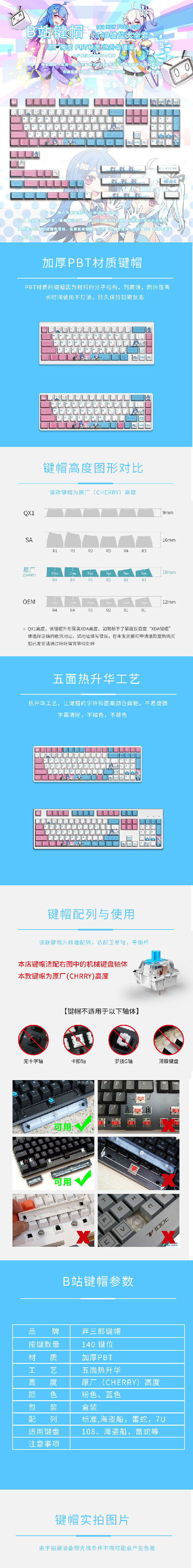现货b站二次元花嫁初音哔哩哔哩134键原厂高度热升华机械键盘键帽