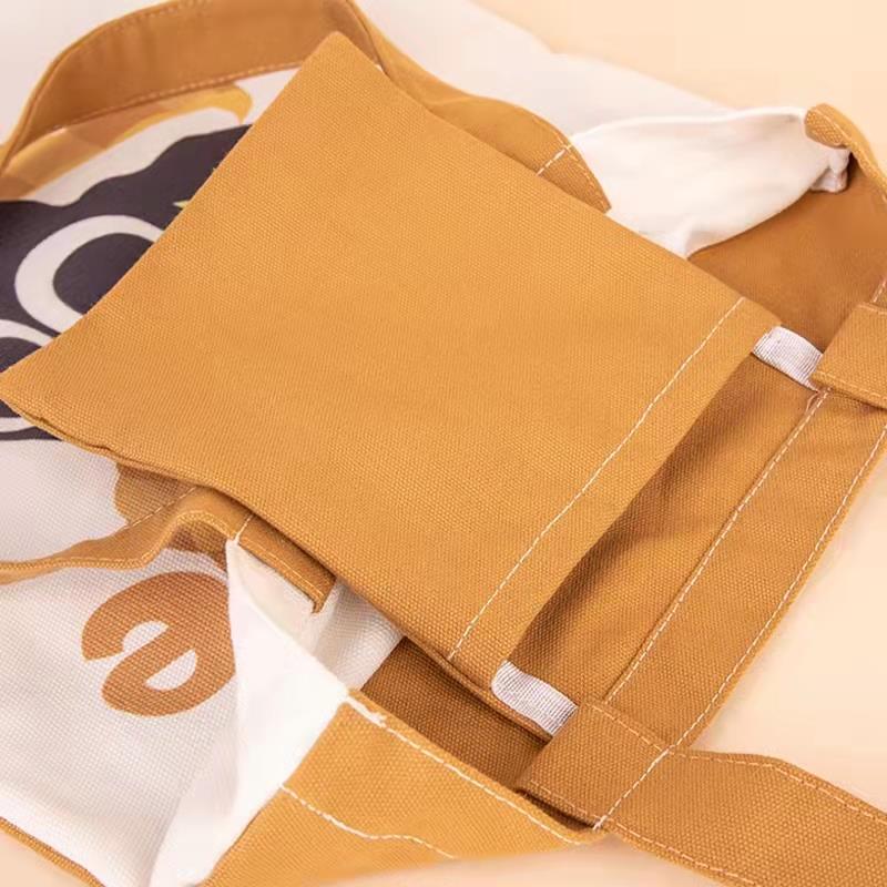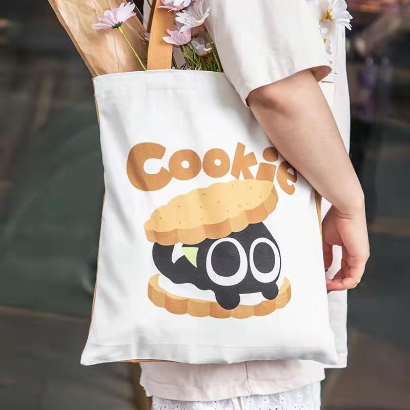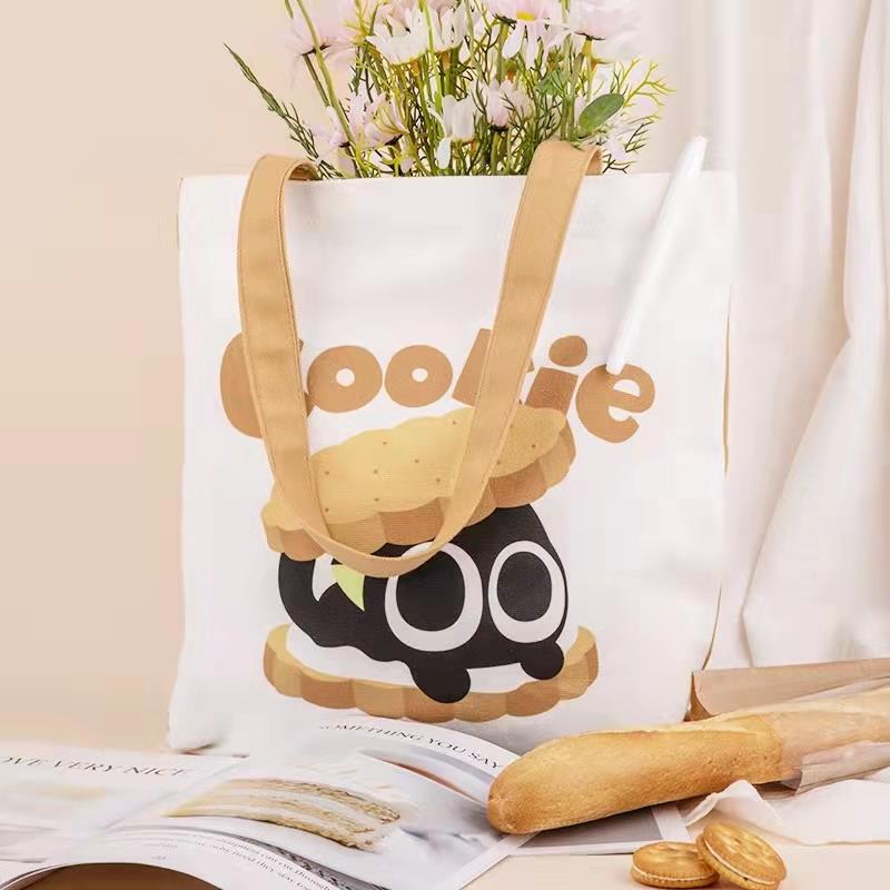 帆布包整体全棉材质手感超舒适,透气亲肤,结实耐用大容量不怕装不下电脑书籍笔记本一次全get~带着贪吃的罗小黑一起出门吧