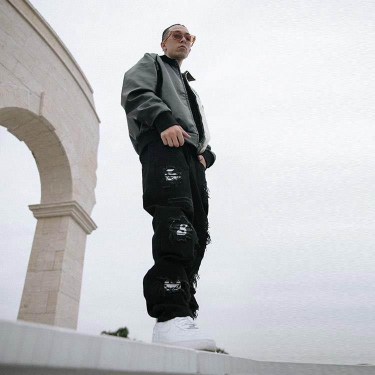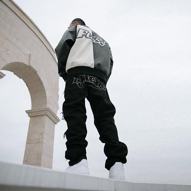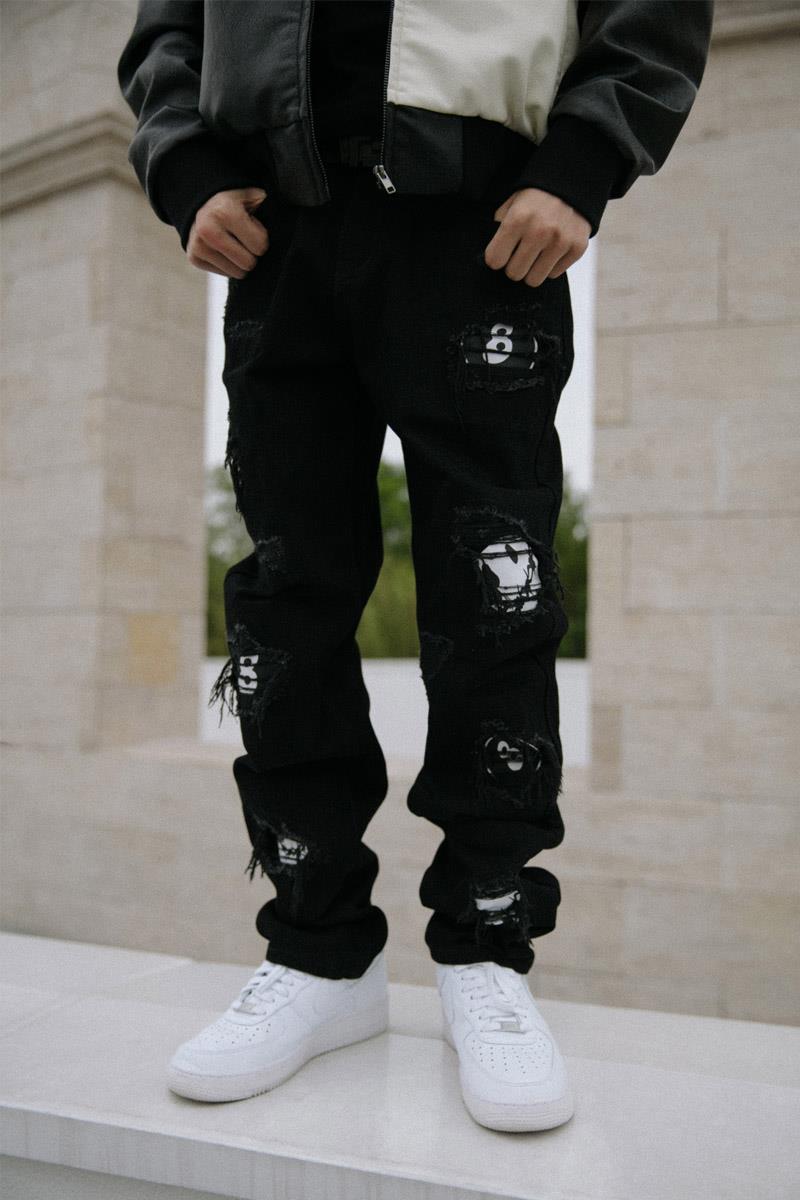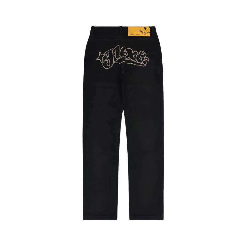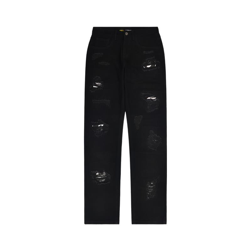 动漫周边 > 服饰 > 【BLACK8MOB X FLEXHOOD】秋冬联名黑色破洞牛仔裤休闲宽松直筒裤