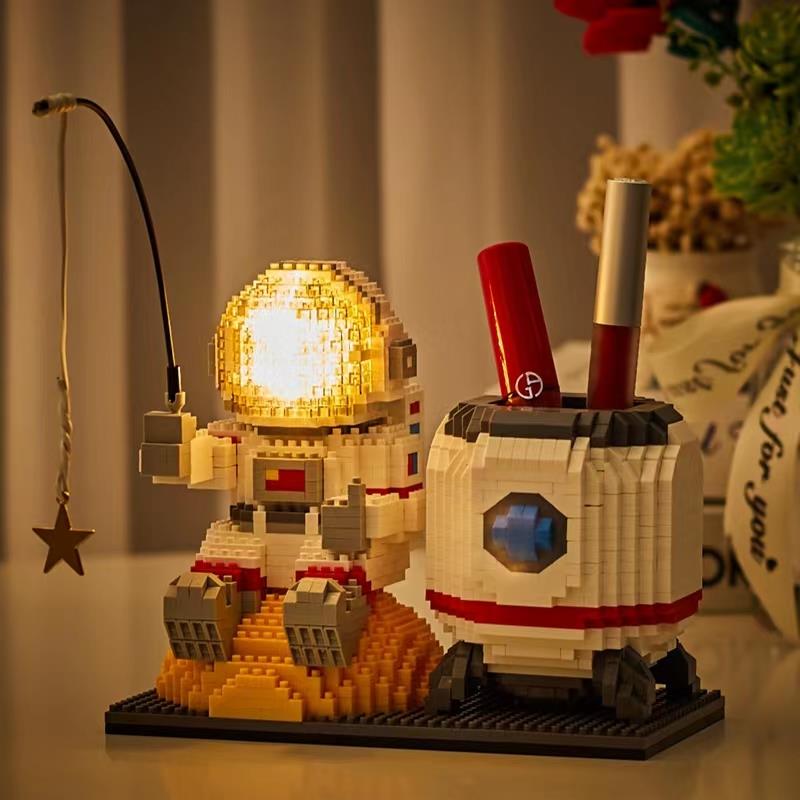 宇航员拼装积木微颗粒益智成年高难度女孩系列礼物笔筒