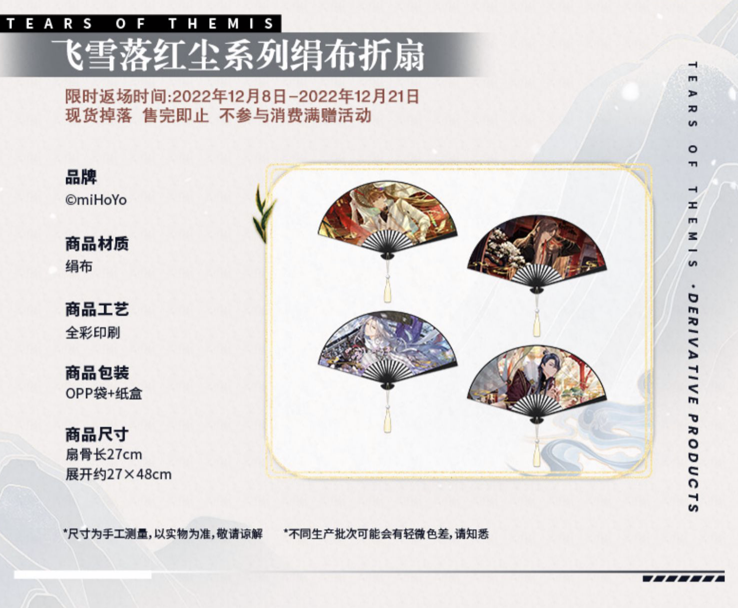 商品尺寸:扇骨长27cm,展开约27*48cm