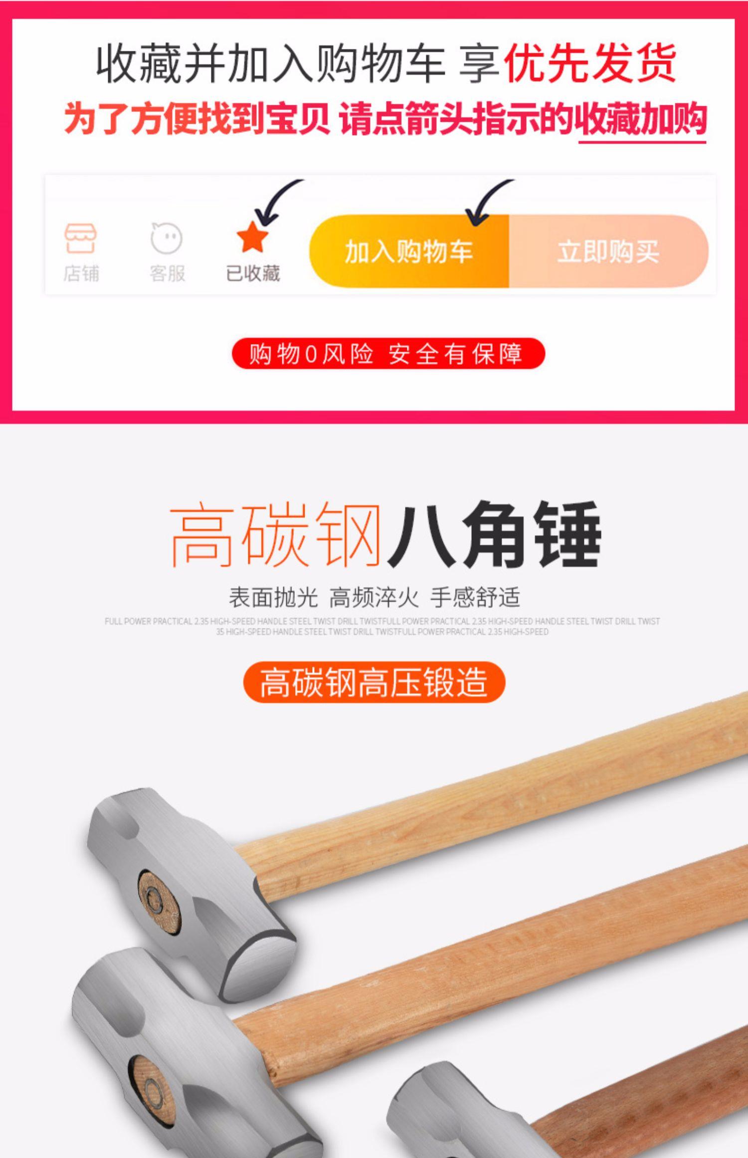 动漫周边 > 其它 > 八角锤方头木柄重型砸墙拆墙榔头多功能石工铁锤子工地用郎头工具