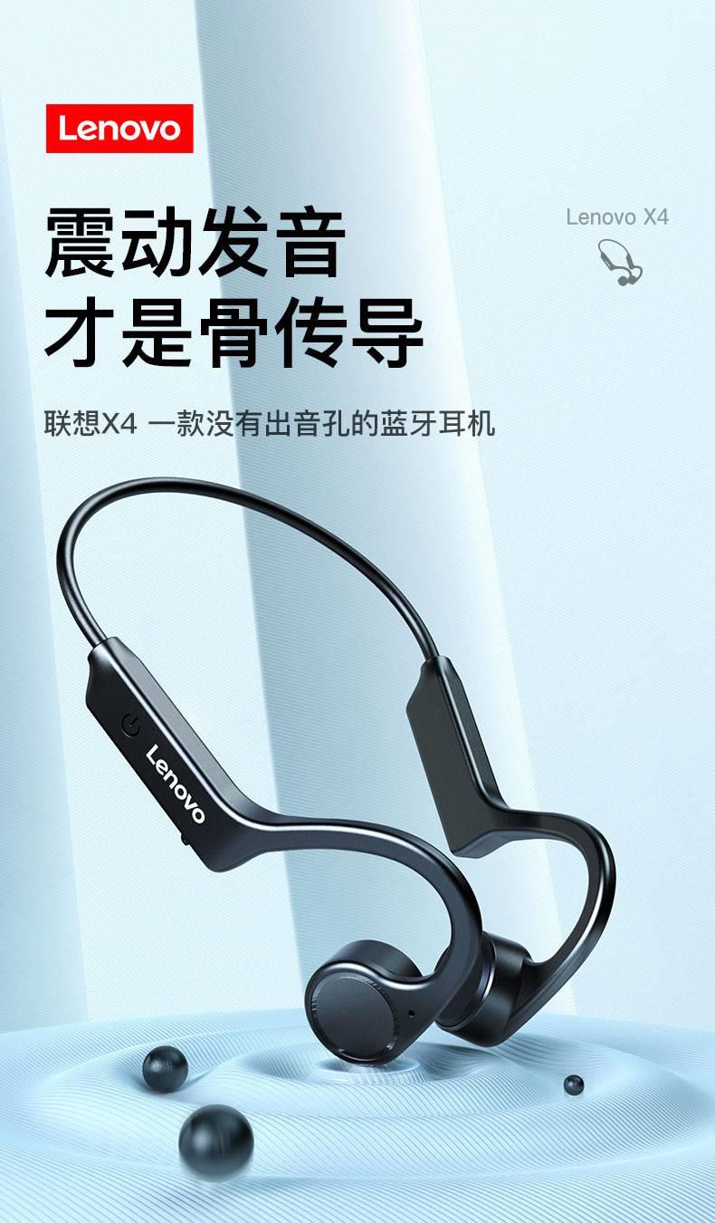 联想x5是骨传导耳机,不入耳的佩戴方式,防水,降噪,无线蓝牙