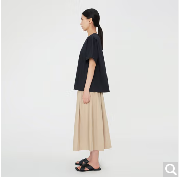 商品名称:无印良品(MUJI)Labo 女式 薄棉布 短袖罩衫 23SS 夏 BFI84C3S 黑色 XS-S