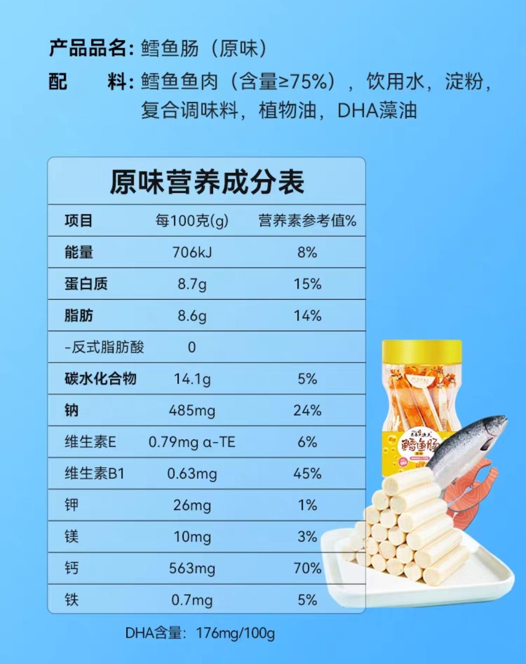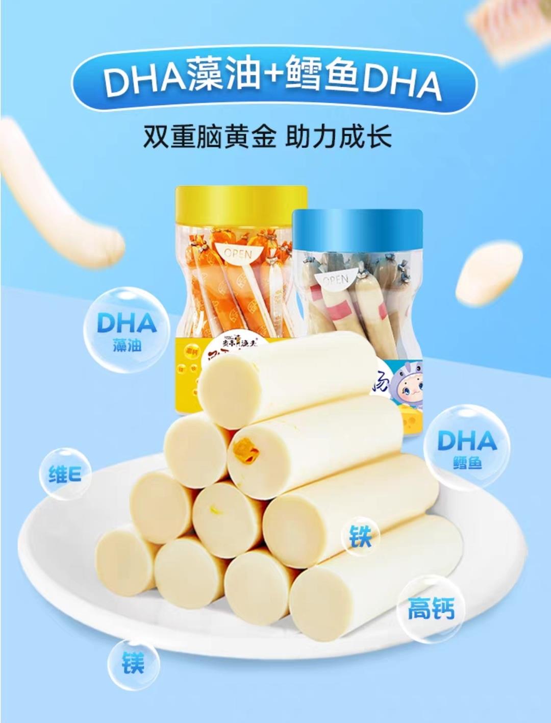 安心鳕鱼肠,小鱼肠,大营养。添加鳕鱼肉≥75%/特别添加DHA藻油