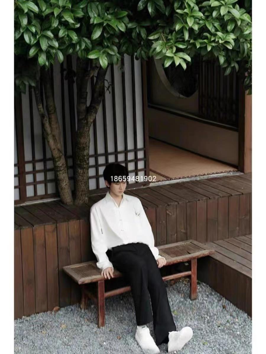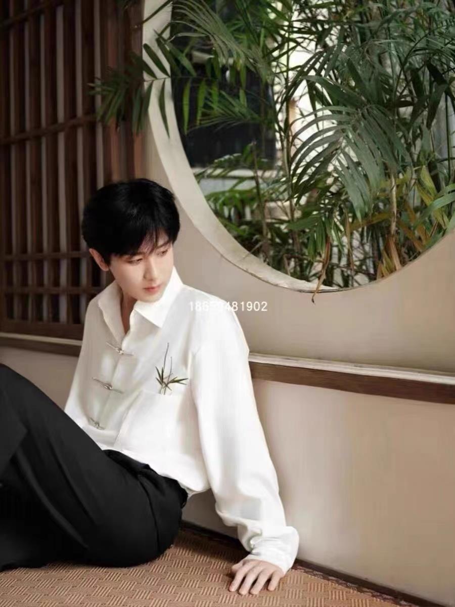 高品质浪凡成毅同款衬衫长袖中国风白色新中式男女同款高级感衬衣