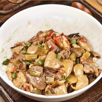 配料:拆骨肉、肥肠、酸菜、辣椒、大蒜、植物油、鸡精、食用盐
