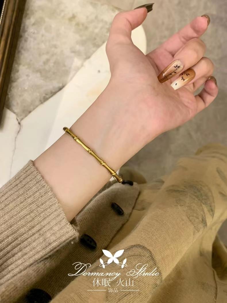 颜色分类: 【凡尔赛园林】镀真金竹节手镯 佩戴方法看此图