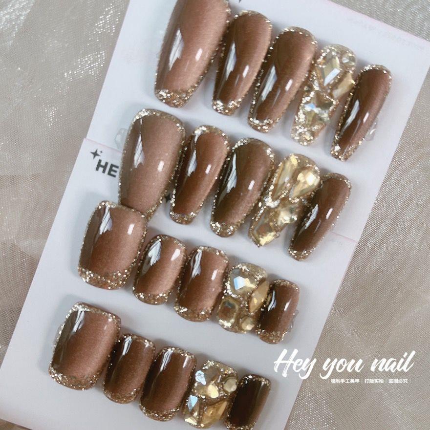 秋冬美拉德猫眼香槟钻手工穿戴甲