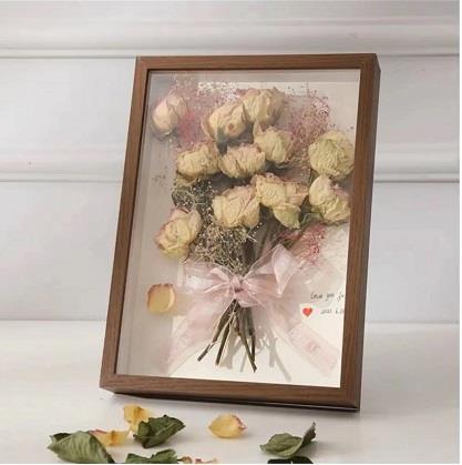干花相框是一种独特的工艺品,它结合了鲜艳的干花和精美的相框,创造出了富有立体感和质感的装饰画。这种相框不仅可以为家居环境增添自然的元素和色彩,还可以作为特别的礼物,赠送亲朋好友,表达深深的情感和纪念