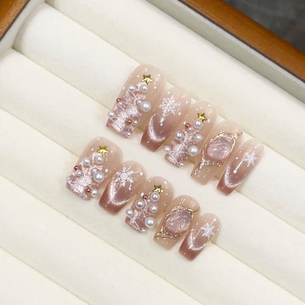 纯手工布契拉提粉晶石猫眼爆闪魔镜粉温柔秋冬美甲贴片