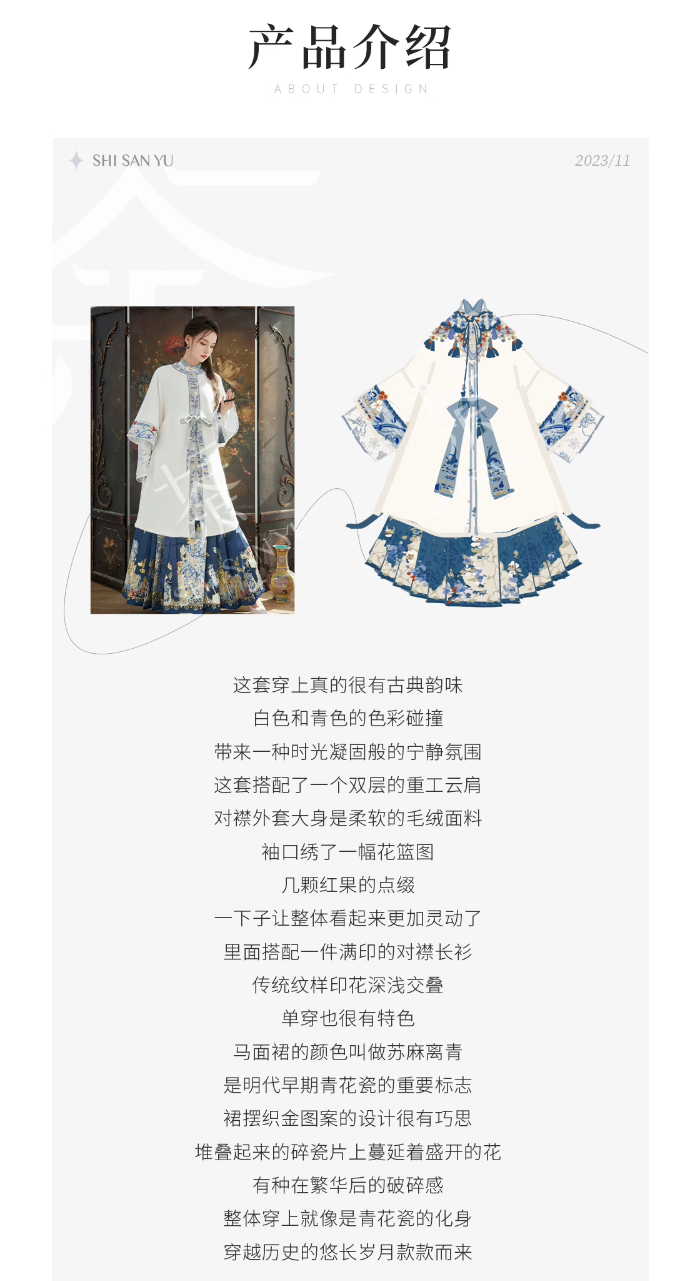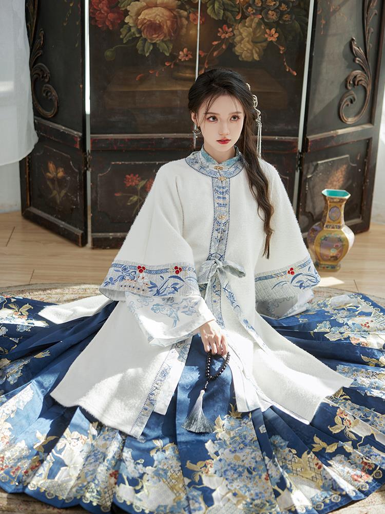 【青花碎玉】冬季保暖对襟衫马面裙青花瓷明制汉服女