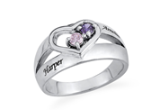 这款戒指在爱心中央饰有两颗生日石来突出心脏,可制成精美的情侣戒指、承诺戒指、礼物戒指或特殊的日常配饰。您可以选择两个闪亮的生日石,并刻上您想要的名字或单词,使其成为永恒。925纯银佩戴安全,美观且不易变形,亲肤友好且不易过敏。 银色,金色,玫瑰金多种颜色选择,工艺精湛,为爱保驾护航。免费刻字,专属印记,给她用心的浪漫。