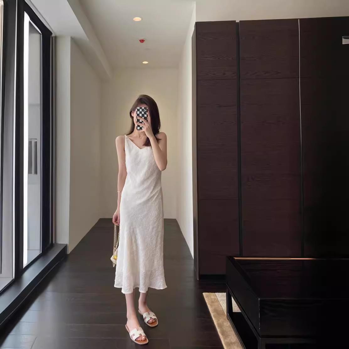 时令之花 法式宽松挂脖纱裙网纱刺绣连衣裙度假仙女裙夏