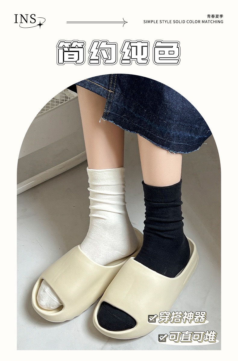 白色袜子可堆堆月子袜学生ins中筒袜纯色潮袜学院网红女袜无骨袜