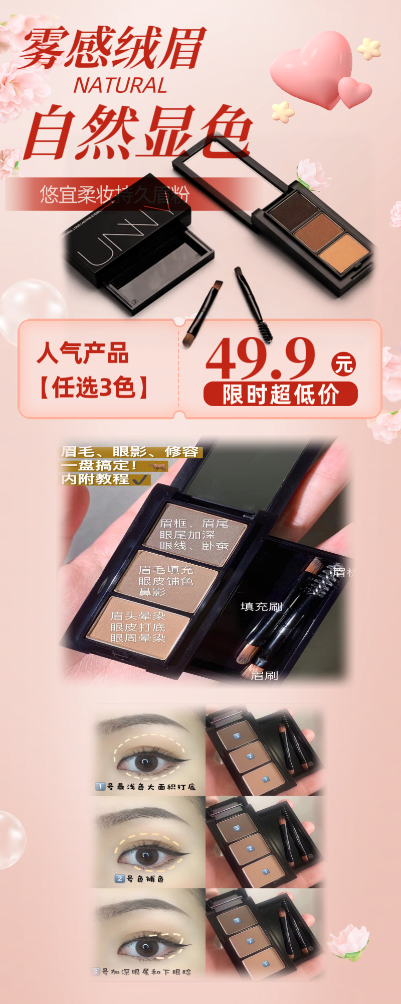 雾感绒眉,自然显色,一盘搞定!