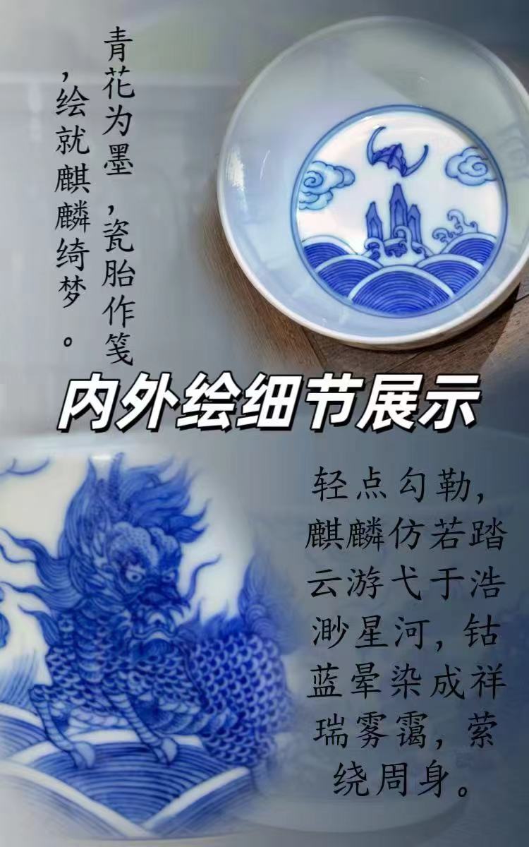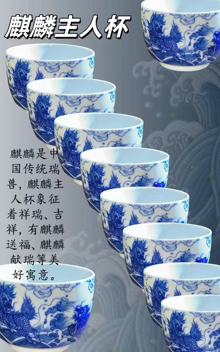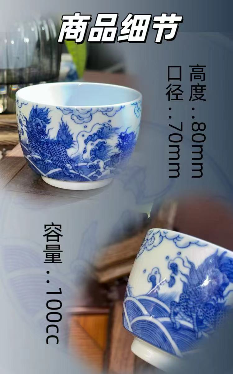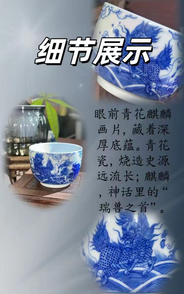 动漫周边 > 其它 > 手工手绘青花麒麟踏浪陶瓷直口杯