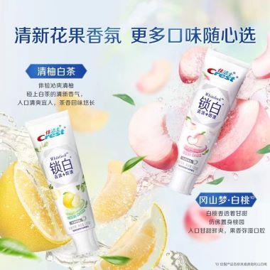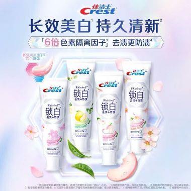 品牌:佳洁士发货地 :浙江省适用人群 :成人功能 :去牙渍,口气清新净含量 :120g规格类型: 常规单品添加成分: 小苏打适用场景: 家用是否含氟: 含氟口味 :白桃味保质期 :1095天生产日期: 2024-05-16